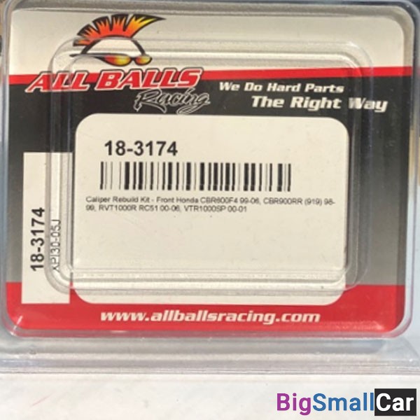 Ремкомплект тормозного суппорта ALL BALLS 18-3174 включает в себя пыльники, сальники, штифты тормозных колодок, колпачки штуцера прокачки, медные шайбы. Список моделей мотоциклов и квадроциклов, на которые устанавливается данный ремкомплект переднего тормозного суппорта: Honda CBR600F4 1999-2006 Honda CBR900RR 1998-1999 Honda RVT1000R RC51 2000-2006 Honda VTR1000SP 2000-2001